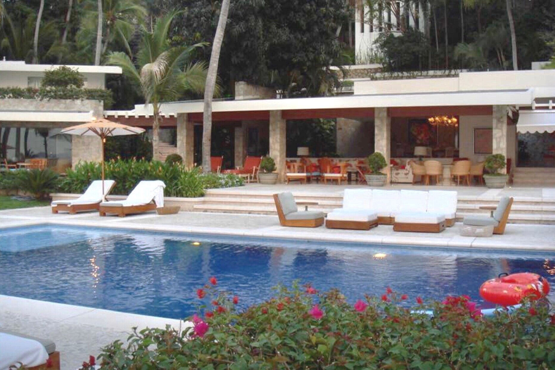 This two-year period renovation involved selecting all new finish surfaces and a complete renovation of 8 bedrooms and 10 bathrooms. Utilizing local craftsmen, the residence’s living areas excluding bedrooms are open to the outdoors which necessitated selecting fabrics and furnishings that could survive the elements such as the high humidity of Acapulco.